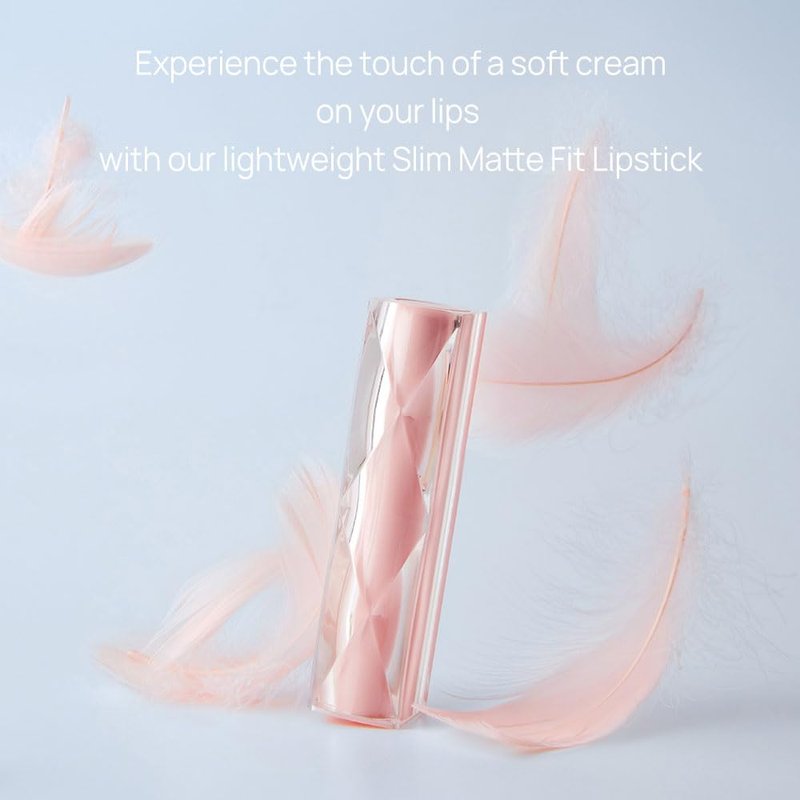 Experience the touch of a soft cream on your lips with our lightweight slim matte fit lipstick 01 Sheer Matte that applies evenly and thinly without clumping 02 Light Powder ensures a perfect, non-drifting fit 03 Comfort Fit Texture for a comfortable lip feel 04 Non-drying to eliminate worries about flaky skin!