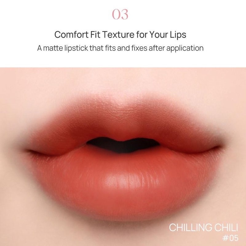 - 💜 Comfort Fit Texture for Your Lips, A matte lipstick that fits and fixes after application