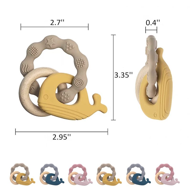 - 【Food Grade Silicone】The teether is carefully made of super soft silicone and natural beech,combined with odorless and chemical-free, contains no BPA or phthalates,it has been approved by consumer product safety commission testing,safe for your baby.