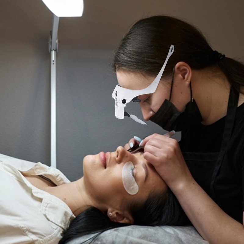 - Adjustable LED Magnifying Glasses; The light mount on the magnifying visor can be adjusted to change the angle of light to suit the task at hand.The lens angle and lens distance is also adjustable.