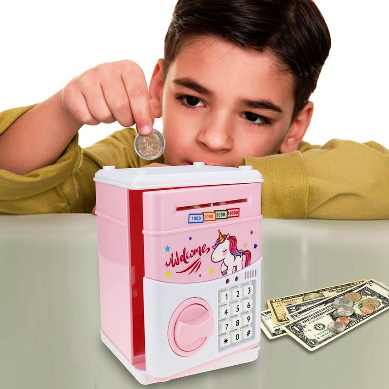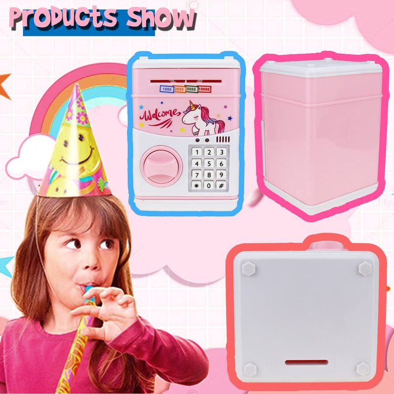 Yoego Piggy Bank for Kids,Electronic Password Piggy Bank Kids Safe Bank Mini ATM Piggy Bank Toy for 3-14 Year Old Boys and Girls (Pink-Unicorn)