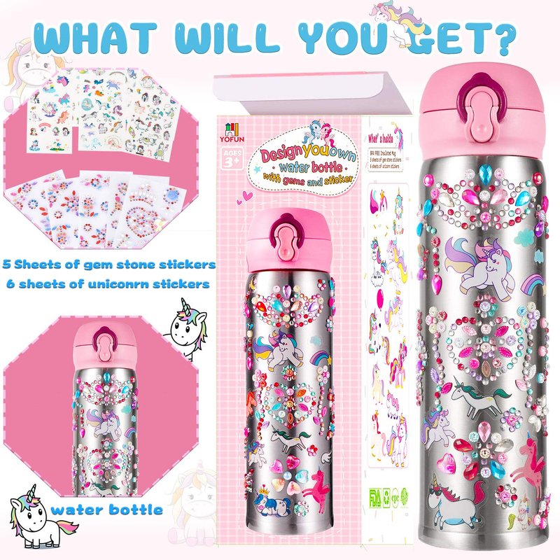 - 【TONS OF GEMS & UNICORNS】The craft kit comes with 11 sheets of glitter gems and unicorn stickers, more than enough to create your own water bottle with tons of left overs