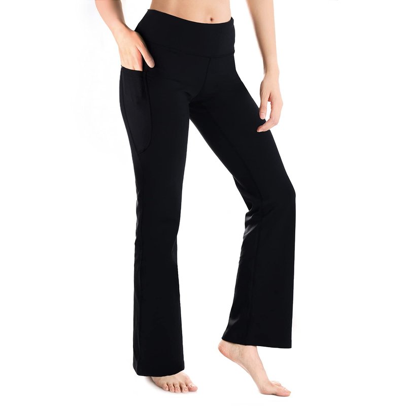 Yogipace,Side Pockets,Petite Women's Bootcut Yoga Pants Workout Pants with Side Pockets,27",Black,Size L