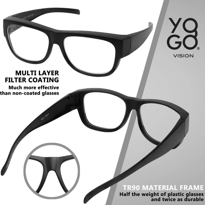 Yogo Vision Fit Over Blue Light Blocking Glasses and Computer Eyewear Wear Over Your Eyeglasses and Readers