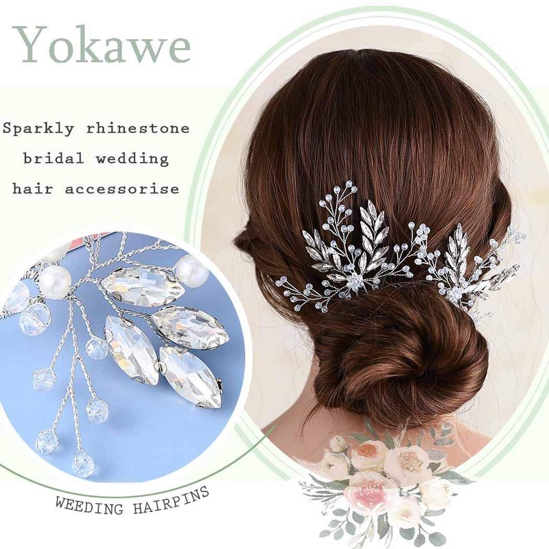 Yokawe Bridal Wedding Hair Pins Silver Rhinestone Bride Hairpin Crystal Hair Accessories for Women and Girls(2 PCS)
