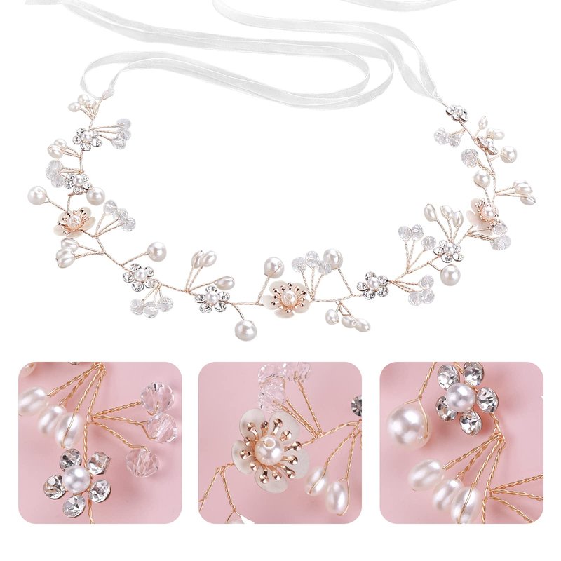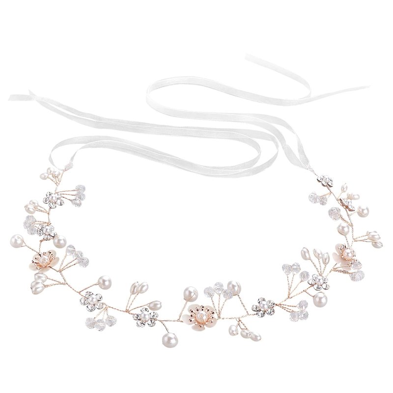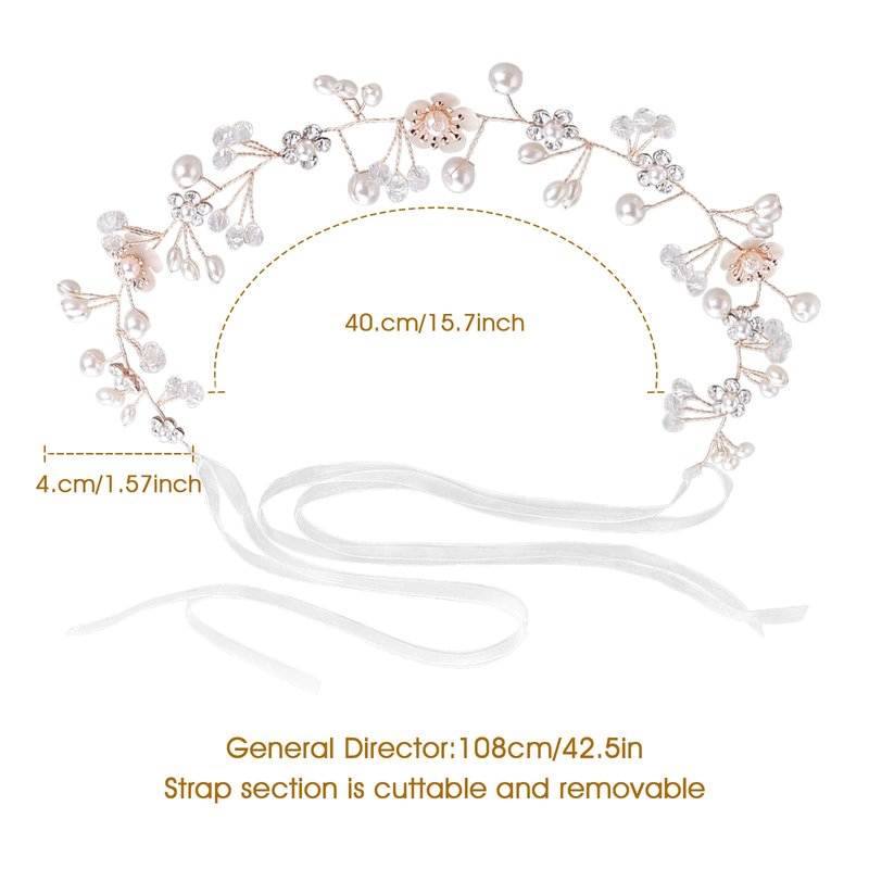 - Ribbon Design: The ribbons at each end of the wedding headband for girls make it easy to secure to hair, You can turn the ribbon into a braid with your hair, or knot it at the back to secure it. If you don't like the ribbons, wire loops at each end of the wedding headpiece make it easy to secure to hair using bobby pins.