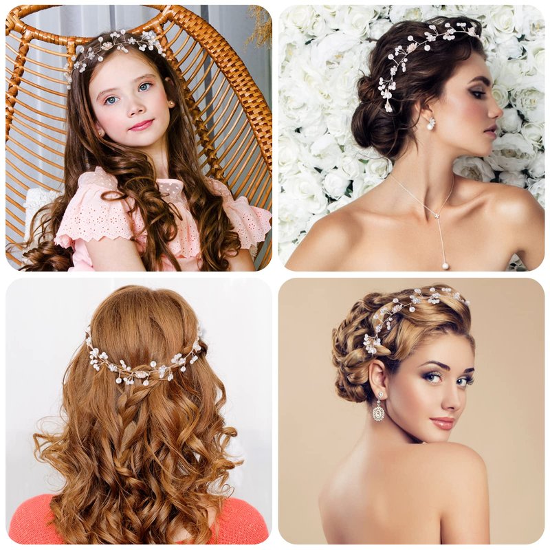 - High-Quality Material: The flower girl headpiece for weddings is made of rhinestone, pearl, and alloy. The alloy is quality and solid, flexible and bendable, can be folded into any shape you want, and is not easy to break. The pearl and rhinestone are inlaid in tightly with copper wire, not easy to fall out.