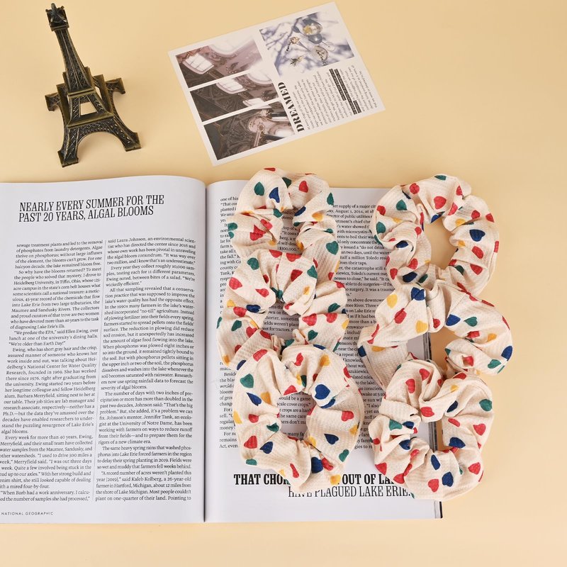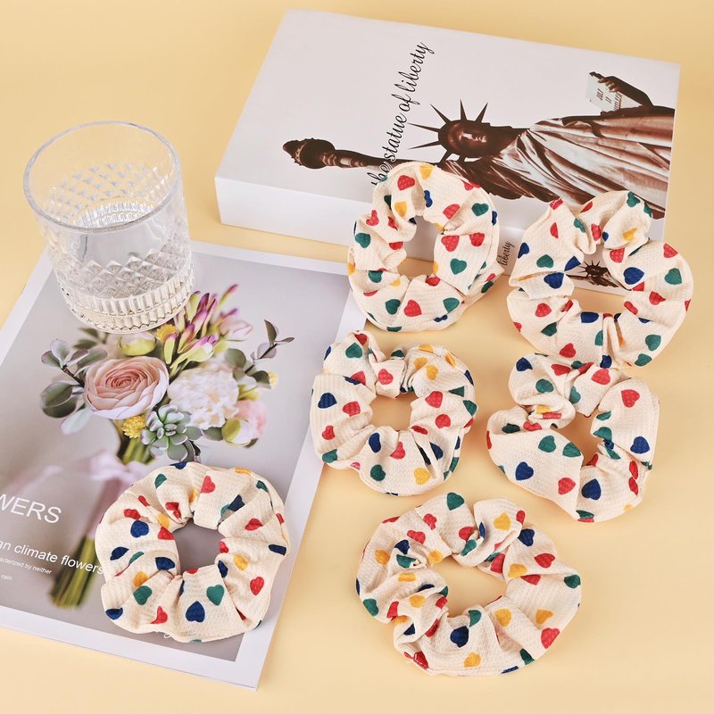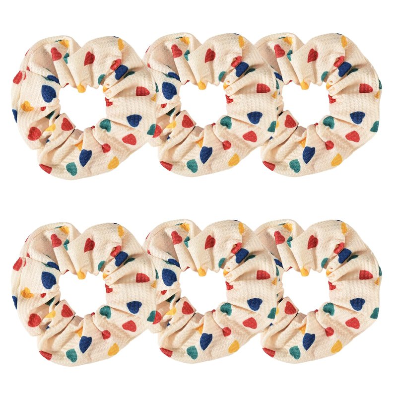 - Fashion Mixmatch: Set of 6, Made of High-quality Bright Filament Handmade that wears and washes great time after time; The Scrunchies surface of this hair band is printed with colorful heart patterns; They are stretchy, soft, comfortable and best of all, durable; The scrunchies are carefully sewn and made to last