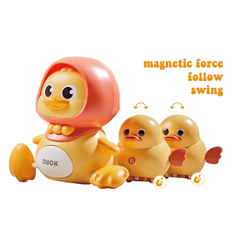 â ãInteractive and Educationalã: The crawling duck toy features a wobbling and swaying motion that captivates and engages babies, encouraging motor skill development and visual tracking. â ãSafe and Durableã: Made from ABS material, the toy is sturdy, impact-resistant, and safe for playful activities, meeting health and safety standards. The 90-degree steering wheel design ensures stability, preventing tipping over during crawling activities. â ãFine Motor Skills Developmentã: With magnet connections and buttons to press, the toy promotes fine motor skills and hand-eye coordination in babies as they explore and interact with the magnetic properties. â ãSensory Stimulationã: The toy incorporates light, music, and sound effects to provide a multi-sensory experience, enhancing auditory, visual, and tactile stimulation for comprehensive sensory development. â ãVersatile Play Modesã: Offers multiple entertaining play options including circle rotation and pet parade, enabling children to giggle and have fun while staying engaged and entertained by the magnetic features.>Description: