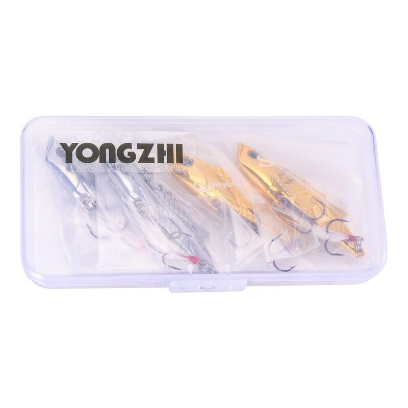 YONGZHI Fishing Lures Metal VIB Hard Spinner Blade Baits with Feathers Treble Hooks for Bass Walleyes Trout Fishing Spoons (Silver and Gold)