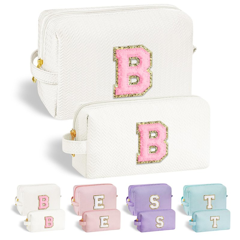 - 【UNIQUE DESIGN】: The initial makeup bag is designed with an inside pocket, which can keep your cosmetics orderly and tidy. The front of the bag has a unique stitch chenille letter will not be easy to drop.The quality alloy and gold-plated zipper is easy to close and open, you can easily take out the items you have stored in your bag