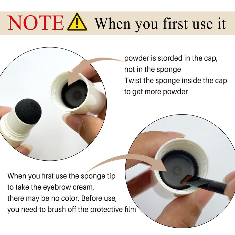 - [Note First Use] When you first use the sponge tip to take the eyebrow cream,there be no color,It's not because of dryness,but new Eyebrow Color has protective film.So before use,you need to brush off the protective film.