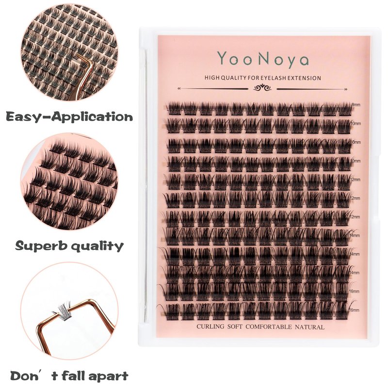 - Great Quality: YOONOYA lash clusters Experience ultimate comfort with premium lightweight and "born soft" fibers; made from high-quality PBT materials, ensuring no kinks and maintaining a stable curl for natural & comfortable wear all day long