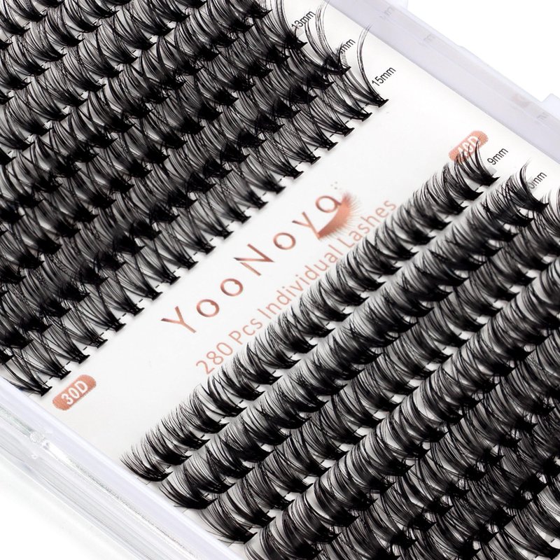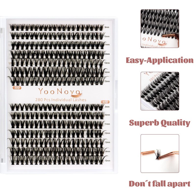 - 【Get More Lash Clusters for Less】YOONOYA offers 280pcs 30D + 40D individual lashes, so affordable and cost-effectiveness. And eyelash clusters include different length, from 9-15mm, with stable d curl, for more styles as you like