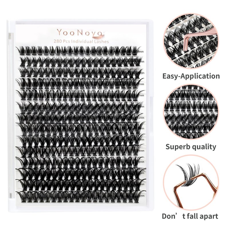 - 【Get More Lash Clusters for Less】YOONOYA offers 280pcs 50D individual lashes, so affordable and cost-effectiveness. And eyelash clusters include different length, from 9-16mm, with stable d curl, for more styles as you like