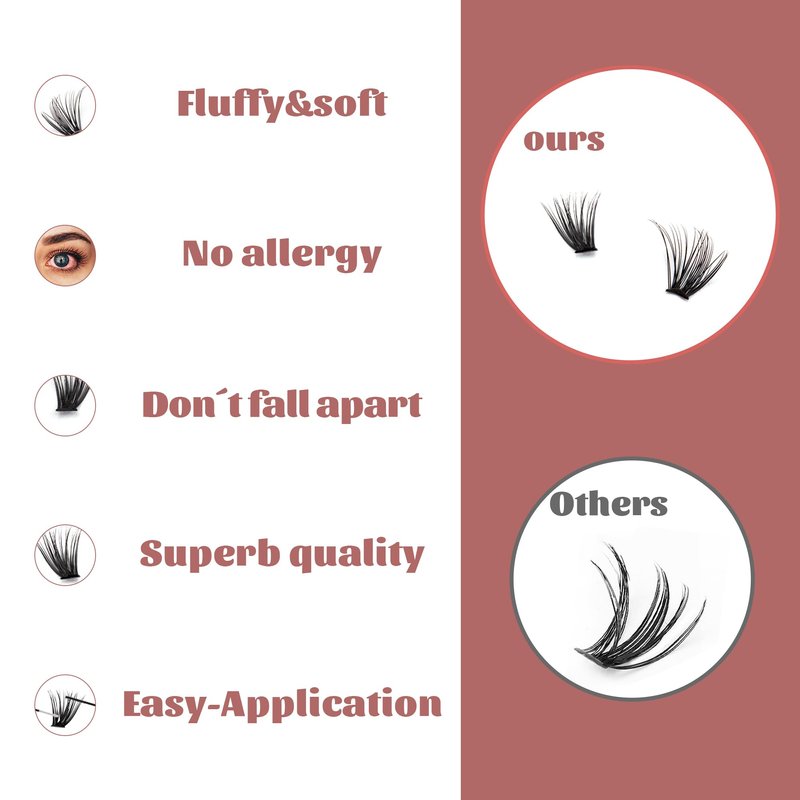 - 【Updated Cluster Lashes Fibers】Our lash clusters are made with the finest updated PBT materials to ensure softness, thickness, durability and longevity, designed to give you fuller lashes that look more natural than traditional false eyelashes