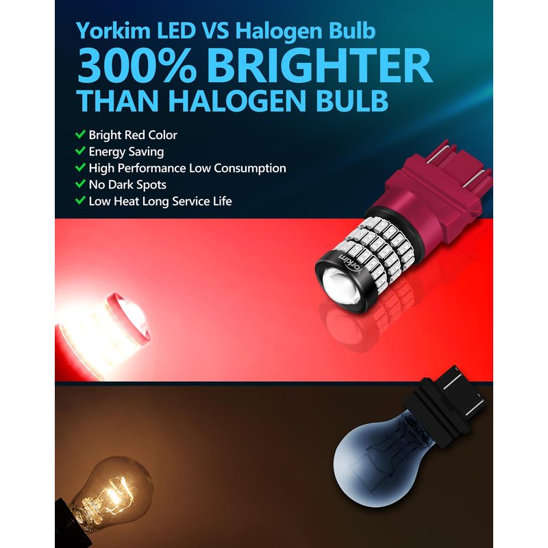 - 【Ultra Bright】Yorkim 3157 Led Bulbs Red are built in Constant Current IC, powered by 54smd 3014 and 4smd high performance 3030 chipsets to offer 300% brightness than OEM halogen bulbs and give a refreshed look to your vehicle