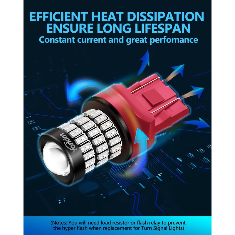 - 【FITMENT】 – 7440 7443 7444 992 WY21W W21W. Super Bright 1628LM/bulb, Voltage 9-30V AC, Current-Output 300MA, Wattage 3.6W/Bulb(fits 12V-24V vehicles). **NOTE**50w Load resistor(Asin:B07KS6KMYG) might be needed to prevent the hyper flash when replacement for Turn Signal Lights