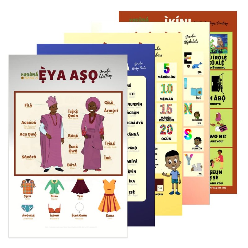 - 5 Yoruba Language Educational Posters for early education, kids and beginners for teaching and learning Yoruba Alphabet Abd, Numbers, Body parts, Clothing and Yoruba Greetings [11x17inch]