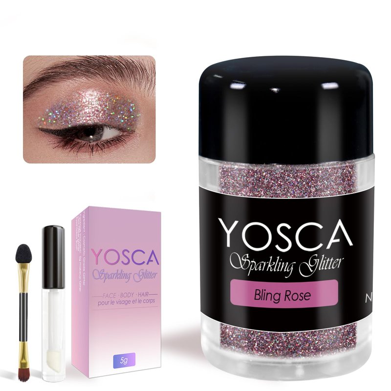 Yosca 5g Sparkle Cosmetic Grade Holographic Magic Purple Makeup Glitter Loose Body Shimmer Powder for Glitter Eyeshadow Lip Face Paint Concert Festival Rave Accessorise - Bling Rose