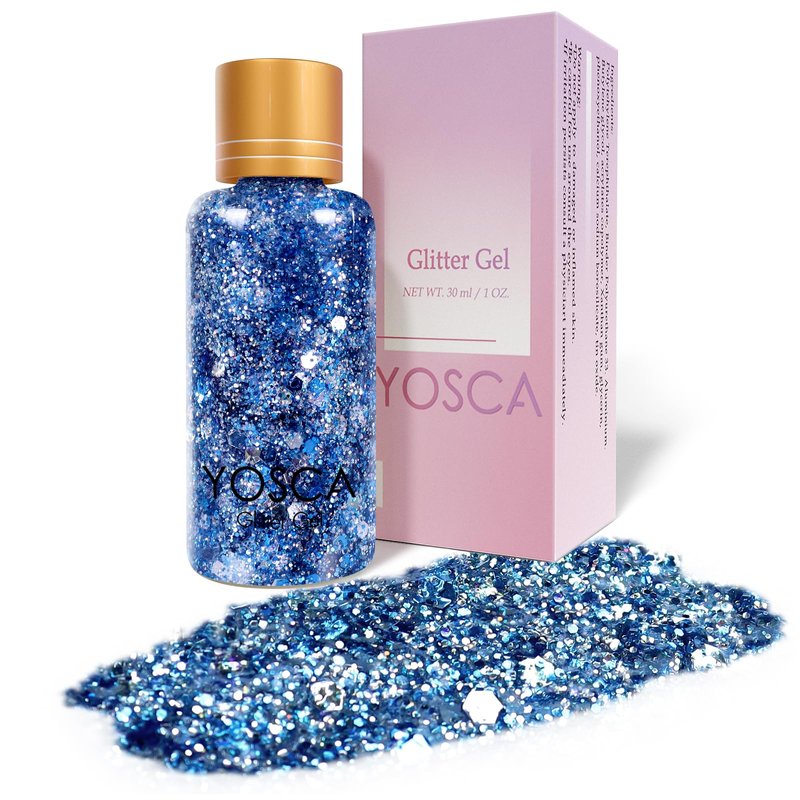 Yosca Body Glitter Gel, 30ML Blue Mermaid Face Glitter, Cosmetic Hair Chunky Glitter Sequins for Party Concert Stage Snow Flake Makeup Christmas Mardi Gras Rave Accessories - Midnight Dance