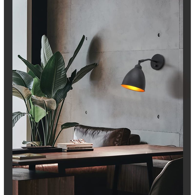 Yosoan Vintage Wall Sconce Bookcase Light, 1-Light Dimmable On Off Switch Hardwired Industrial Mount Metal Fixture Lighting Lamp with 6.1" Oval Black Metal Shade in-Build Gold Reading Light for Bed