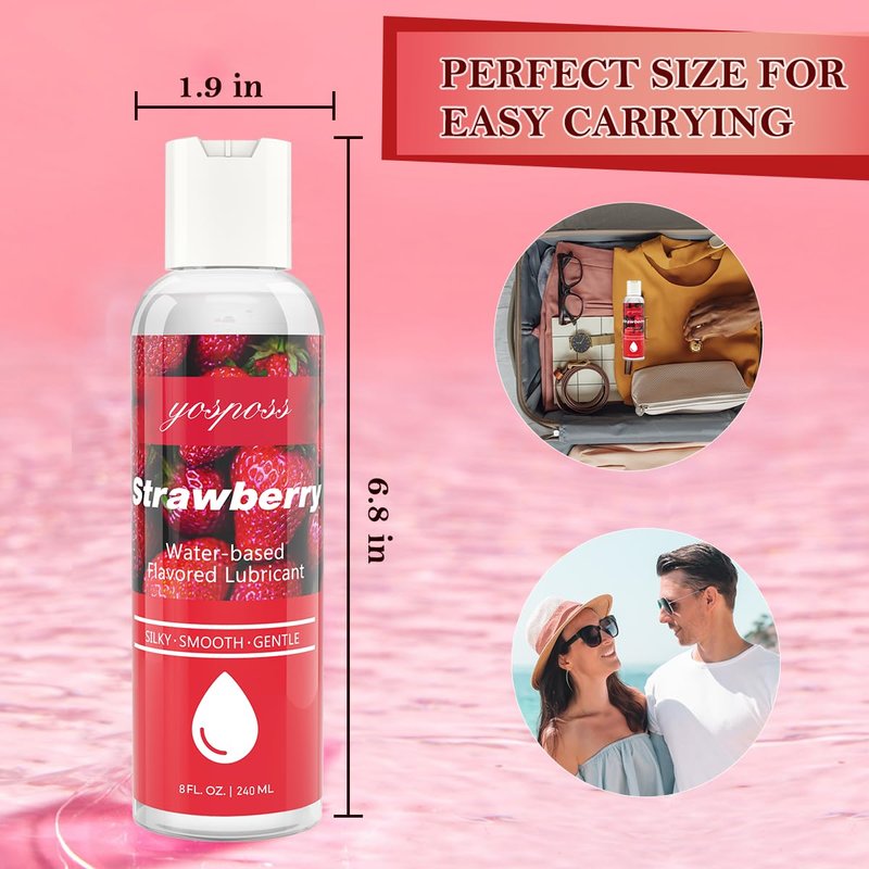 YOSPOSS Strawberry Flavored Water-Based Lubricant, Silky Smooth Personal Lube for Women, Men and Couples, Sugar-Free, Non-Staining, Condom-Safe & Toy-Friendly, 8 Fl Oz