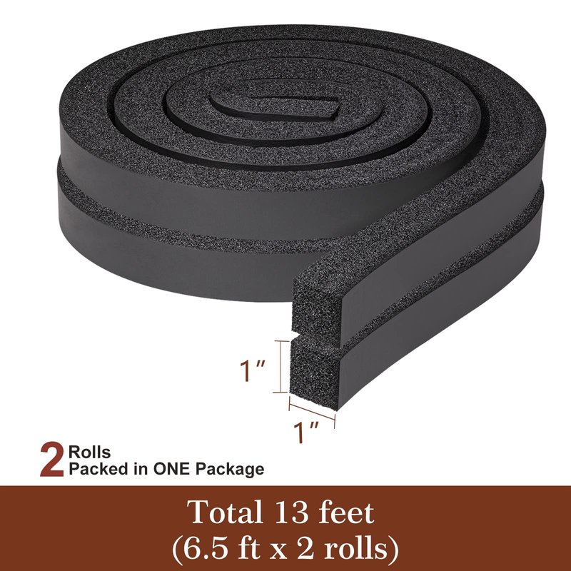 - ADJUSTABLE & FLEXIBLE - This package includes 2 pcs of 1 in x 1 in x 6.5 ft foam tape, total 13 feet long. The two rolls are packed together in one package. The air conditioner window foam is easy enough to customize and cut to size with scissors or blade, and bend easily and conform to any shape