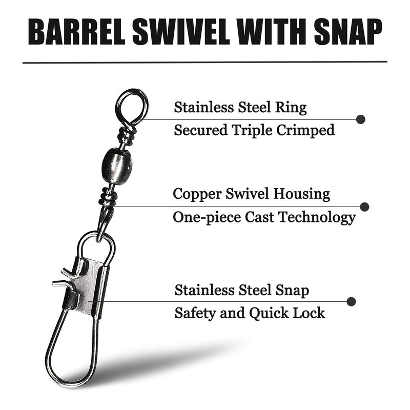 - HIGH STRENGTH: YOTO Ball Bearing Fishing snap swivels made of high quality copper, snap and ring made with enhanced stainless steel. Full body coated with black nickel coating for incredible strength and durability.
