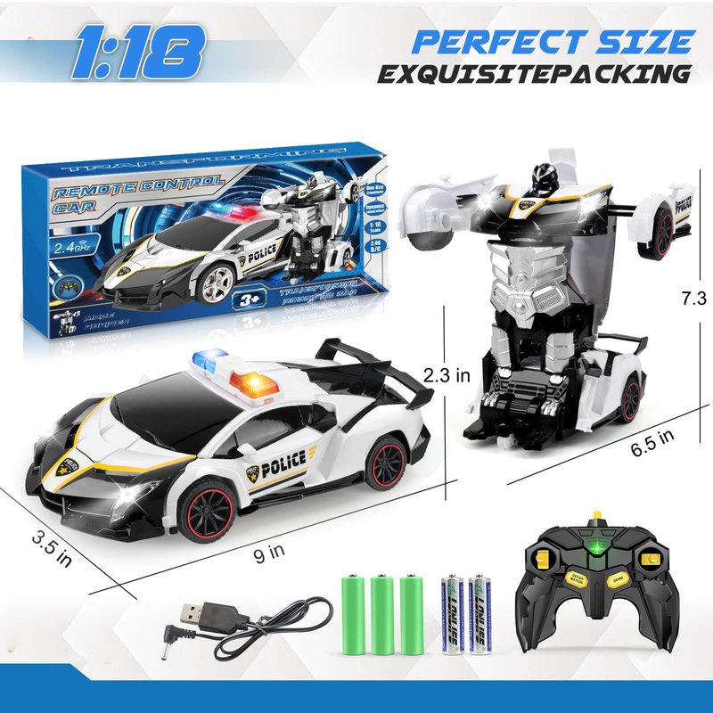 YOTOY Remote Control Car Toy for Kids 4 5 6 7 8, Transform Police RC Cars Toy, Robot Car, Birthday Gift for Kids Toys Age 4 5 6 Years Old Boys and Girls