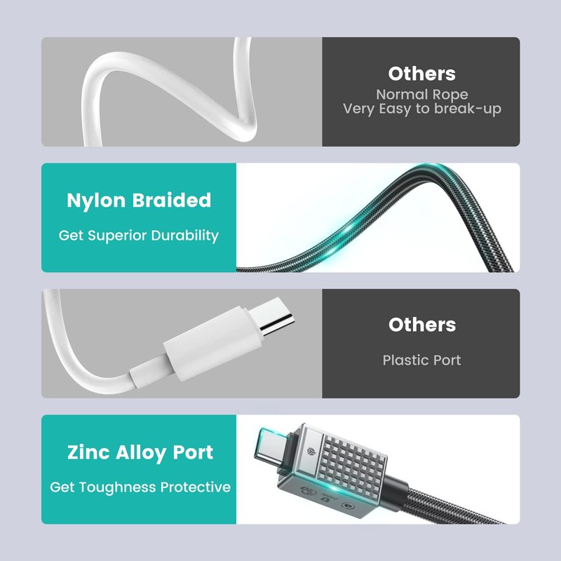 - Reliable Nylon braid: Constructed with premium materials and reinforced connectors, this cable is built to withstand daily use and provide long-lasting performance. Aluminum housing, nylon braiding and 250d fiber core keeps the USB-C cable to USB-C safe from fraying and splitting while withstanding 40,000 bending tests. Easy storage in bags or drawers, without the hassle of unruly cables.