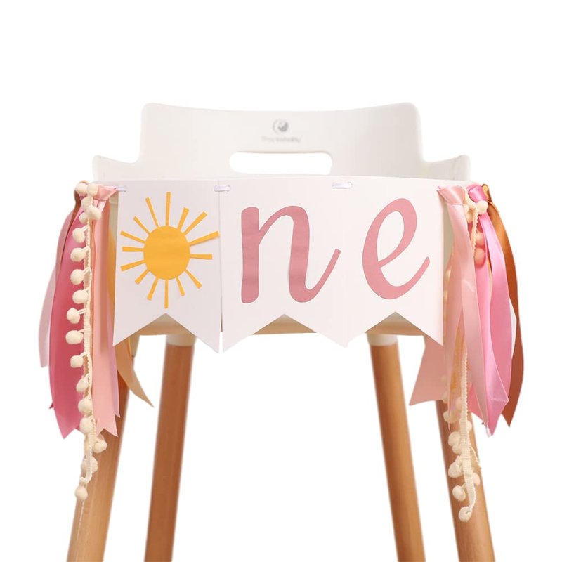 - ABOUT THE 1ST BIRTHDAY PARTY BABY GIRLS HIGH CHAIR BANNER - This pink sun-themed high chair banner is not only dreamy in the sun, but the patterns and letters on the milky white card are laser-cut to look smooth, the fringes on both sides are hand-tied, and the material is selected high-quality webbing