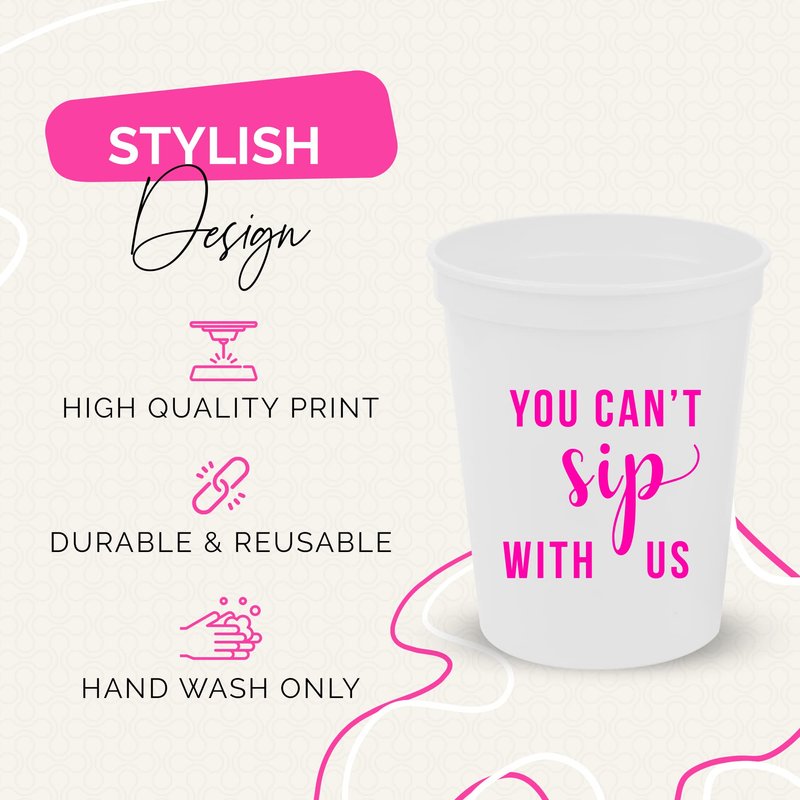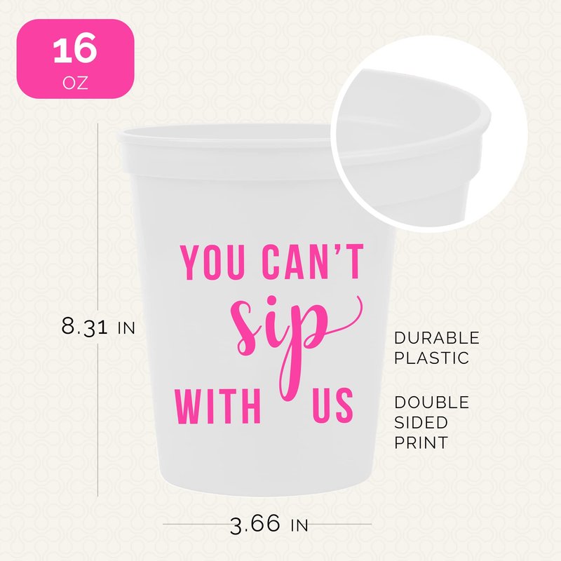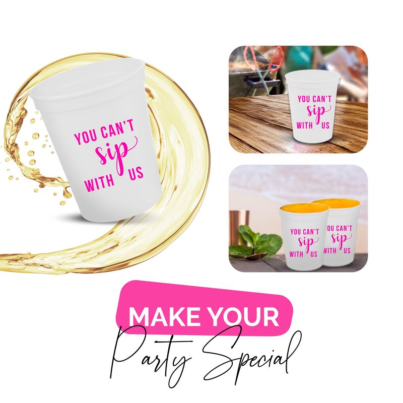 - IDEAL PARTY FAVORS - These 'You Can't Sip With Us' cups make the perfect party favors for girls' night decorations. Guests will love taking them home as a memento of an unforgettable evening, enhancing your party’s wow factor.