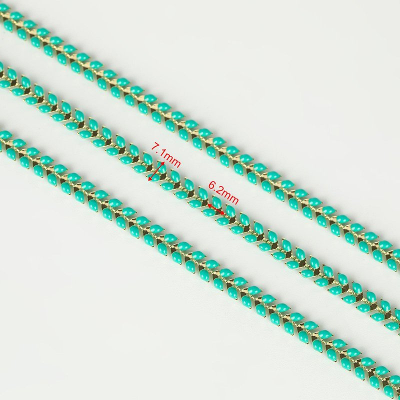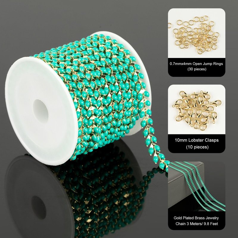 YOUBEIYEE 9.8 Feet Gold Plated Brass Chains Bulk Bluish Green Enamel Arrow Cable Jewelry Chain for Jewelry Making with Jump Rings and Lobster Clasps Jewelry Supplies
