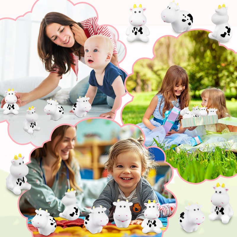 These mini squeeze rubber cows come in 2 different styles, sitting and standing, adding variety to your bath or water play. Different shapes and styles provide more possibilities, you can place them at will, stimulate children's curiosity and interest, and exercise baby's grasping power.