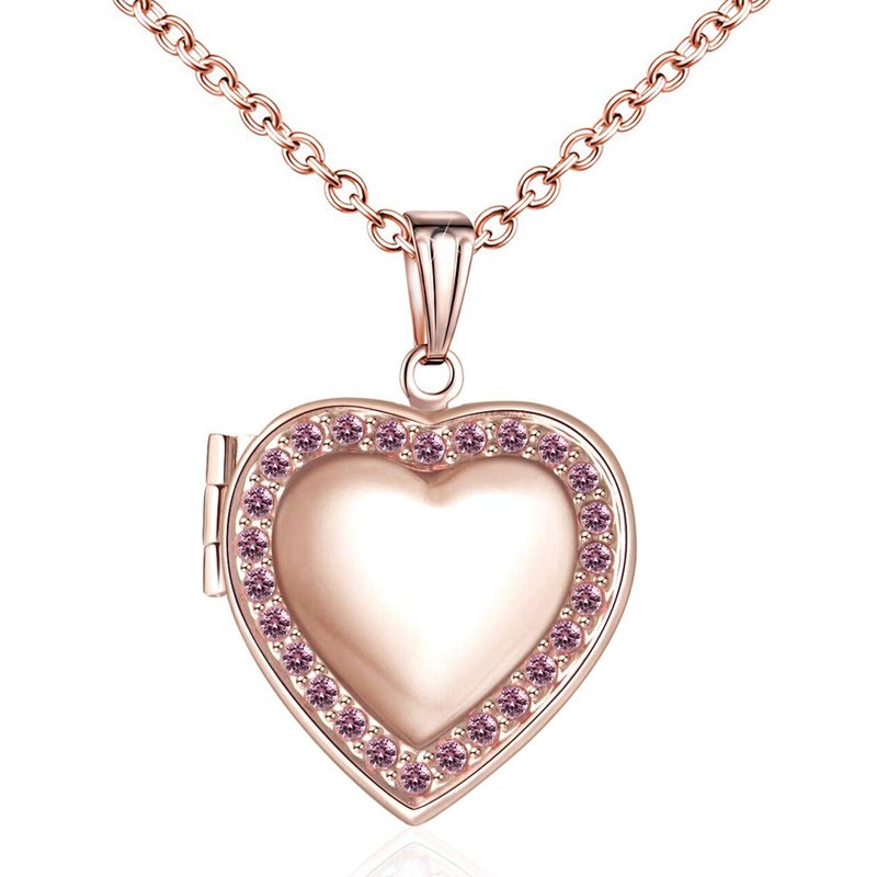 YOUFENG Love Heart Locket Necklace Holds Pictures Paved Blue Red White CZ Rose Gold Charm Living Memory Lockets (Rose gold Locket)
