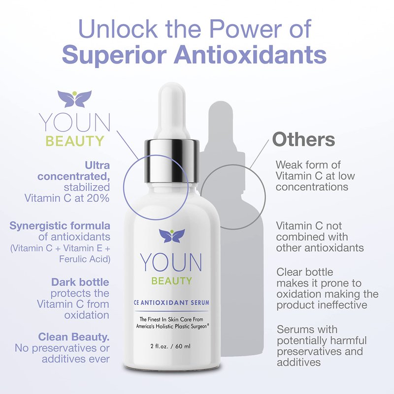 - COMMITMENT TO CLEAN SKINCARE – Our antioxidant serum for face is part of YOUN Beauty's commitment to clean skincare. We use only natural and non-toxic ingredients, free from harmful chemicals and preservatives, to help you achieve healthy, beautiful skin without compromising your health