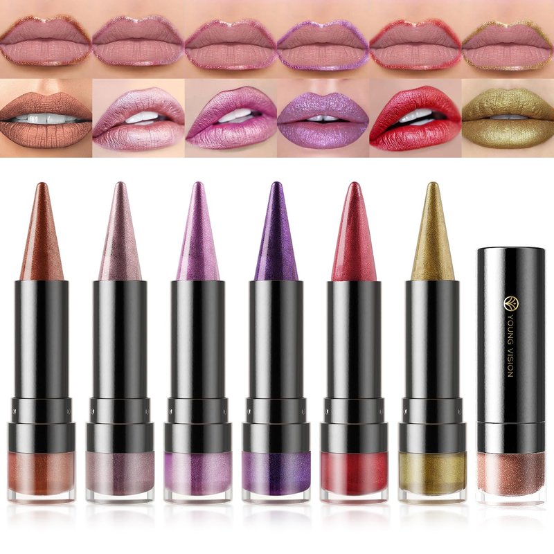 YOUNG VISION Shimmering Metallic Lipstick Set – 6-Piece Copper and Shimmer Lip Color Collection, Long-lasting Bold Shine, Smooth Texture for Sculpted Lips