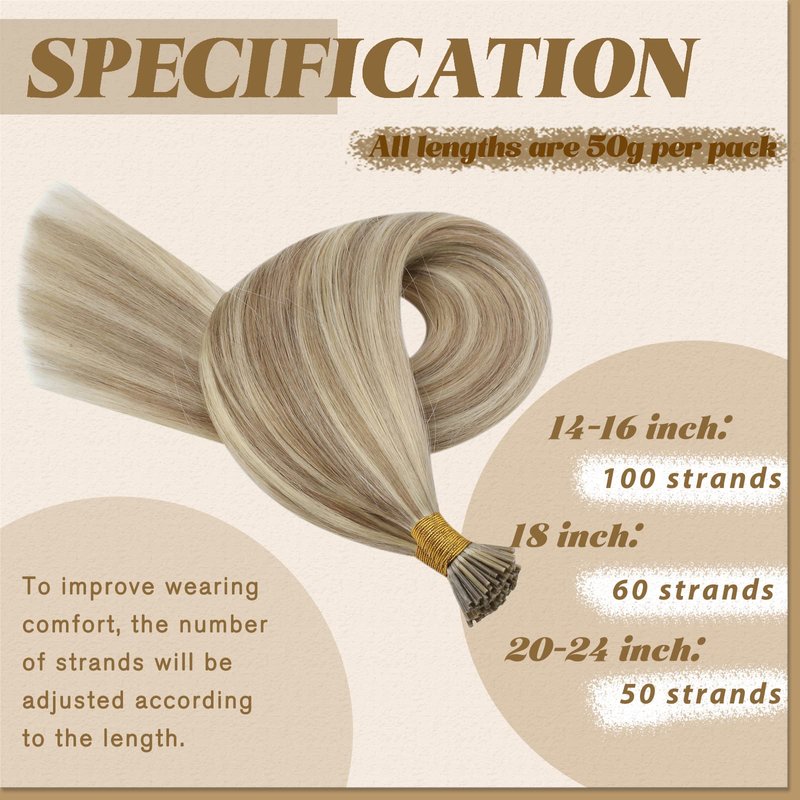 - Easy to Apply: Our I Tip Real Human Hair Extensions utilize cold fusion for installation, there's no heat needed; no glue needed; no sewing needed, protecting your hair from potential damage
