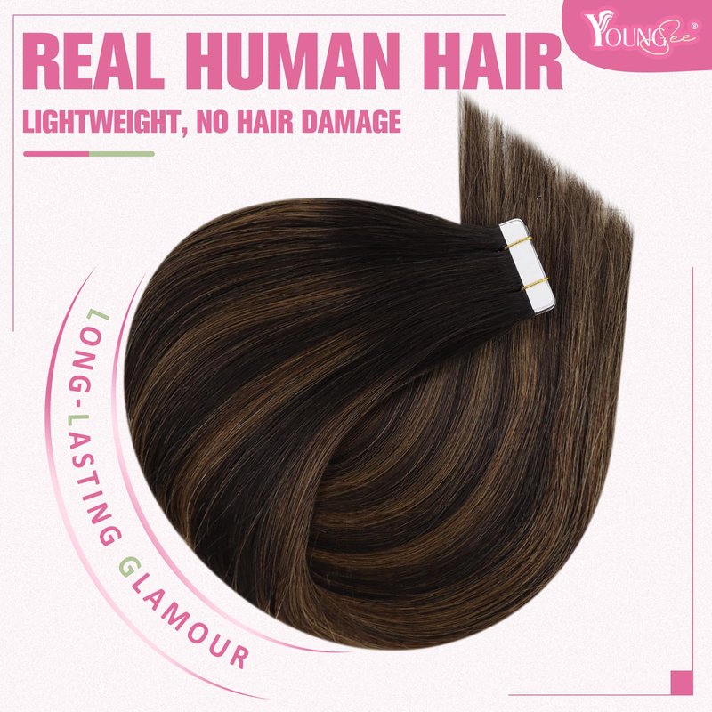 YoungSee Tape in Hair Extensions Human Hair Ombre Brown