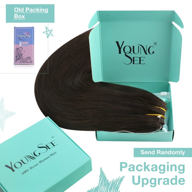 • 【Warm Tips】YoungSee fish line human hair extensions brown can be straightened and restyled below 356℉. Regarding dyeing, you can only dye the extensions to darker colors, and avoid bleaching them to lighter colors. In addition, to prevent damage to the hair extensions, please refrain from wearing them to the swimming pool or the beach.If you feel one pack is a little thin,you can match clip hair extensions or purchase two packs.