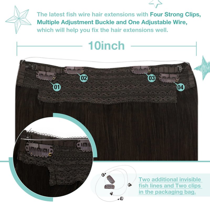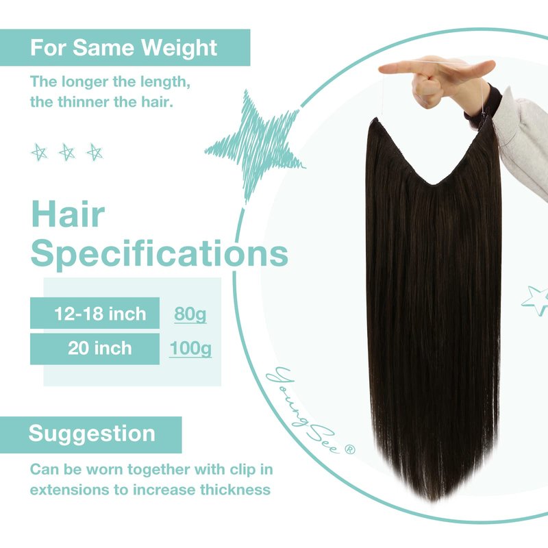 • 【Personalized Customization】 YoungSee wire hair extensions human hair are tailored for you! Our fish line hair extensions can be customized based on individual head shape, hair volume and hair color, to ensure better fit and naturalness. If you find the wire to be too long, we can customize it for you based on your head circumference! Whether it's for special occasions or daily looks, our customized wire extensions will make you look more elegant and confident.