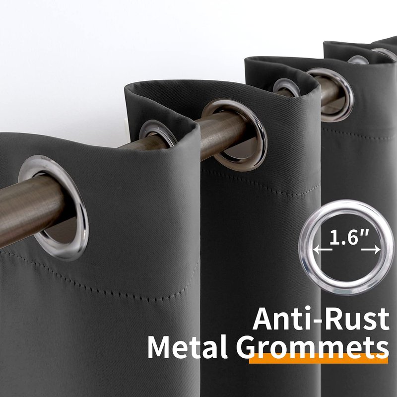 - Our bedroom curtains with grommet construction, each curtain panel has 6 elegant silver metal grommets with 1.6-inch inner diameter, fit well with most rods. Easy to hang, and slide smoothly.