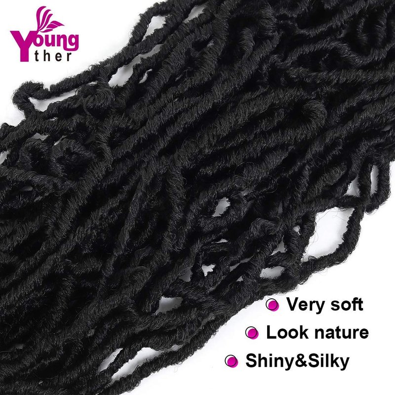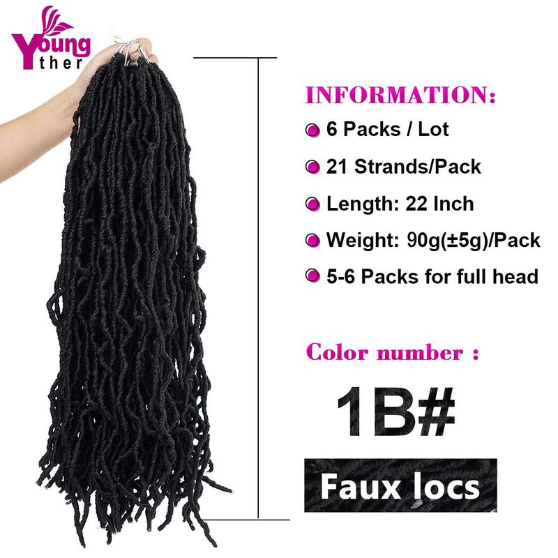 Youngther 22 inch New Faux Locs Crochet Hair 6 Packs Most Natural New Soft Locs Crochet Hair Curly Wavy Synthetic Hair Hair Extensions (22inch-1B#)
