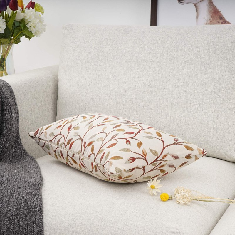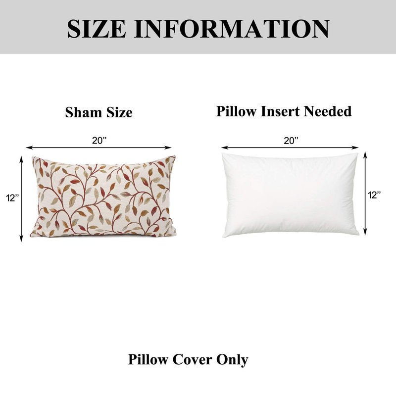 YOUR SMILE Farmhouse Oblong Rectangle Floral Chenille Embroidery Decorative Throw Pillow Case Cushion Cover Lumbar Pillowcase for Sofa 12 x 20 Inch, Brown Leaves