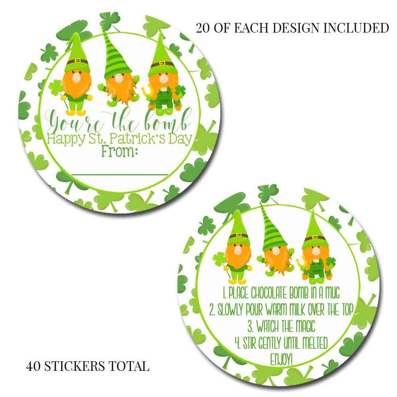 You're The Bomb Gnome Themed St. Patrick's Day Hot Cocoa Bomb Packaging Sticker Labels, Total of 40 2" Circle Stickers (20 Sets of 2) by AmandaCreation