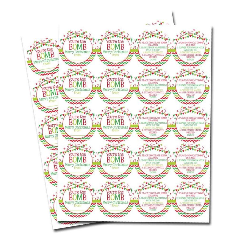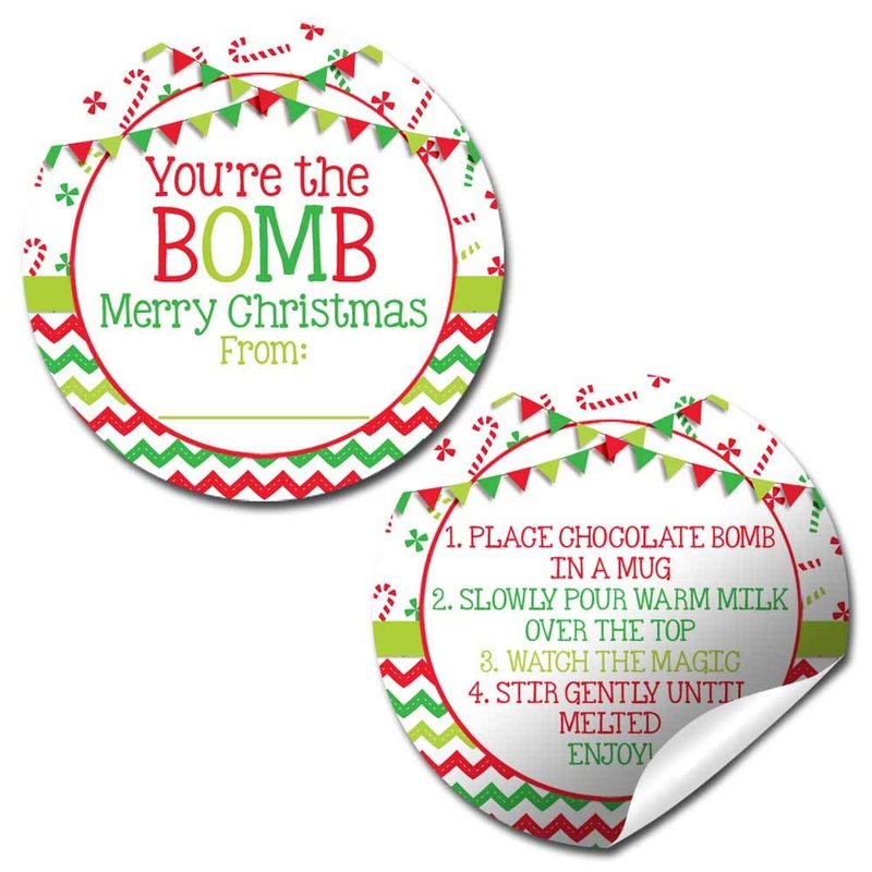You're The Bomb Merry Christmas Themed Hot Cocoa Bomb Packaging Sticker Labels, Total of 40 2" Circle Stickers (20 Sets of 2) by AmandaCreation