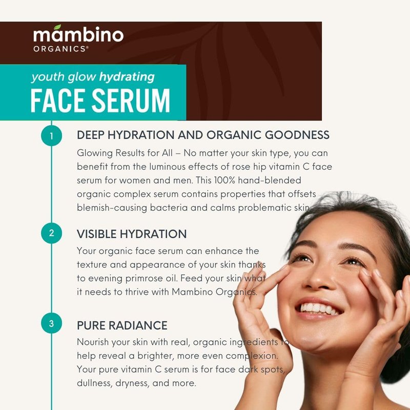 Youth Glow Hydrating Serum – Organic, Face Serum with Namibian Marula – Nourishing Omegas & Vitamin C for Dryness, Dark Spots, Dullness – Cruelty-Free Skin Care by Mambino Organics, 1 fl oz