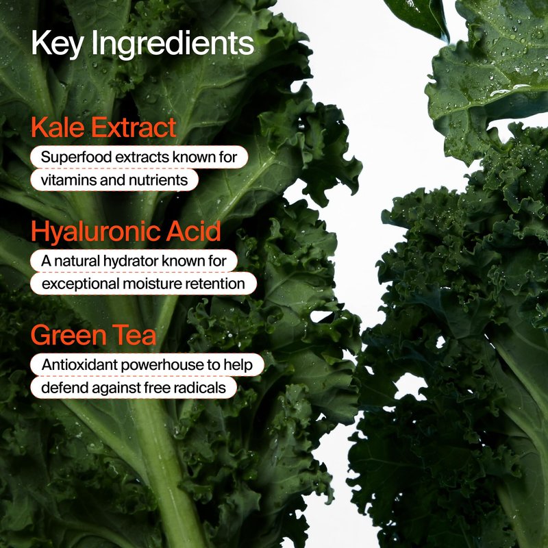 - Leafy Green Moisture - Fast absorbing facial cream formulated with kale, green tea & hyaluronic acid. Works to plump dry skin, fight anti-aging and provide 48 hours of continuous hydration. Firm the look of your skin with this lightweight gel moisturizer.