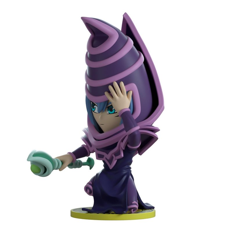- You tooz Yugioh Collection: Dark Magician enters You tooz in the attack mode! Kneeling at 5 inches tall with his long green staff pointed forward readying a masterful spell, he holds onto the hood of his purple robe that raises up into a point. With a look of determination crossing his face, blue hair pokes through the opening of his hood, while his pointed robe at chest piece sit over a flowing purple cape that pulls away from his arms and legs which are covered in a tight purple material and are adorned with intricate swirling patterns